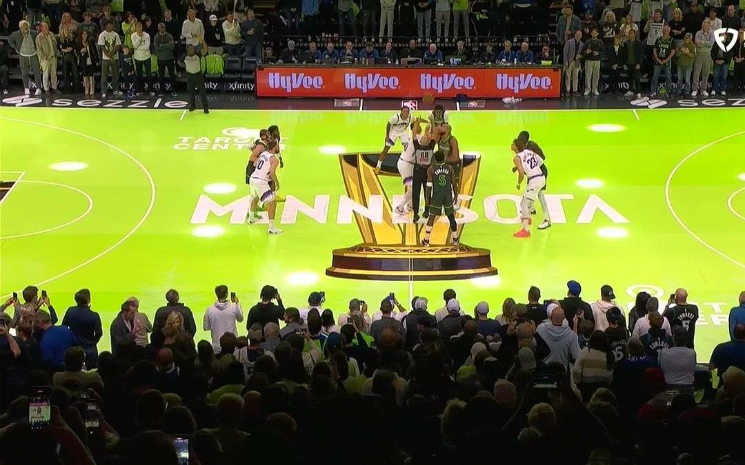 这场地晃瞎眼,森林狼NBA杯的亮绿色主场场地遭吐槽