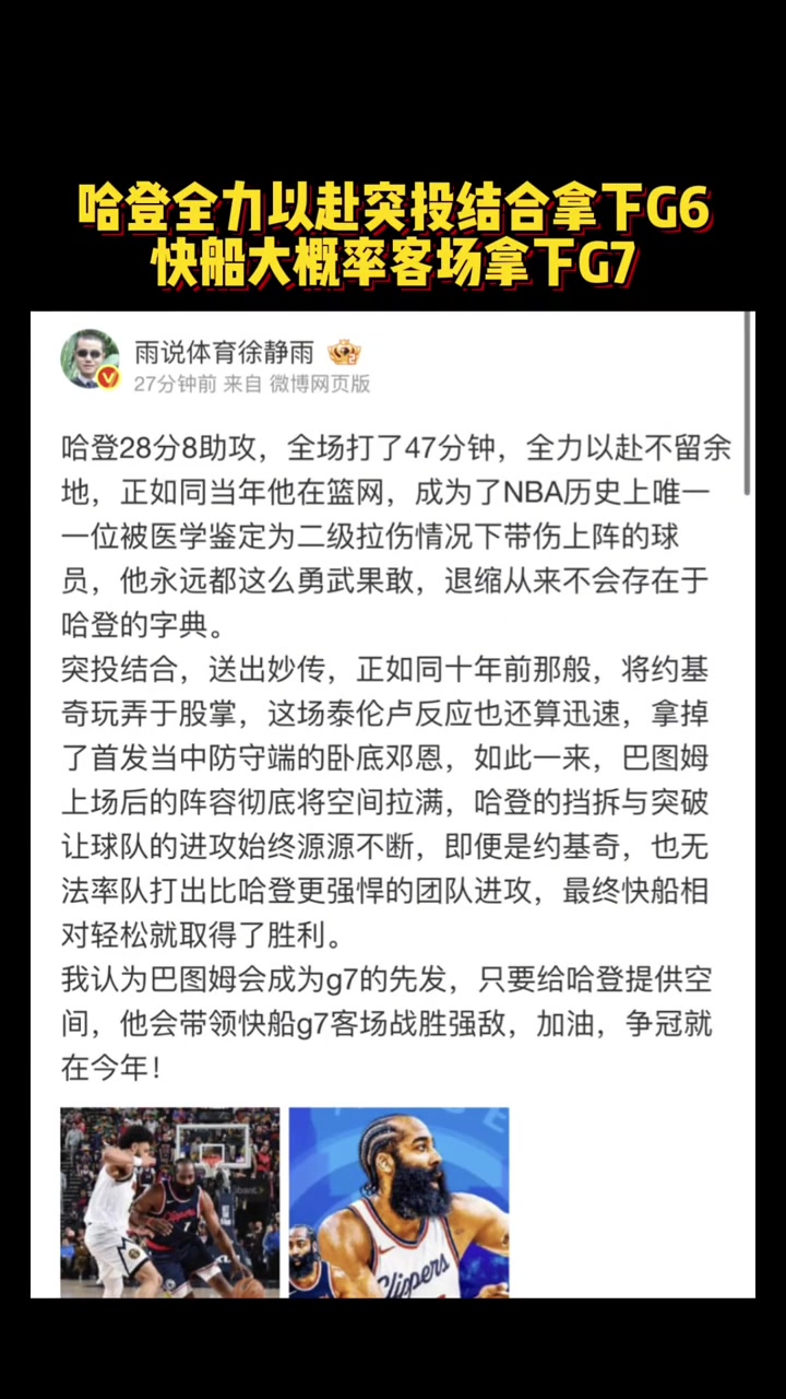 哈登狂砍55分!徐静雨:哈登目前问题就是体能,快船依旧没啥希望