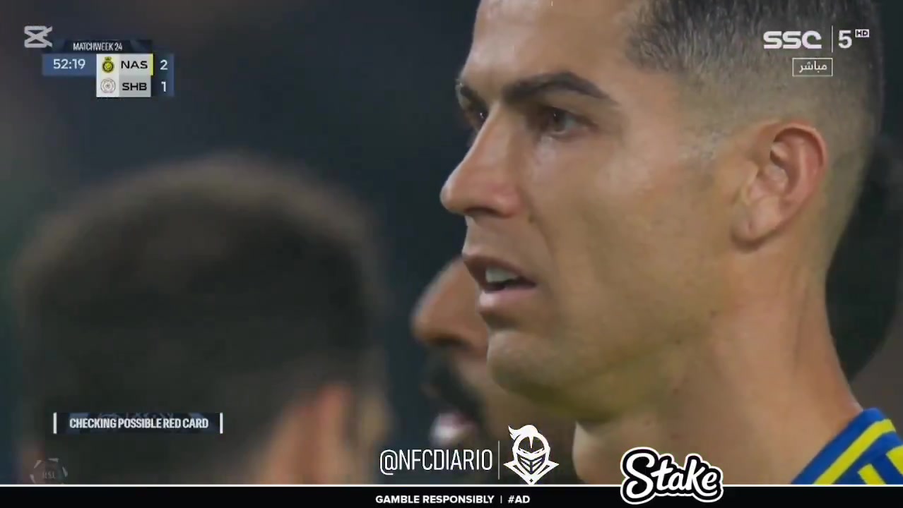 自己辛苦反超的比分就这么被扳平,场边C罗很无奈
