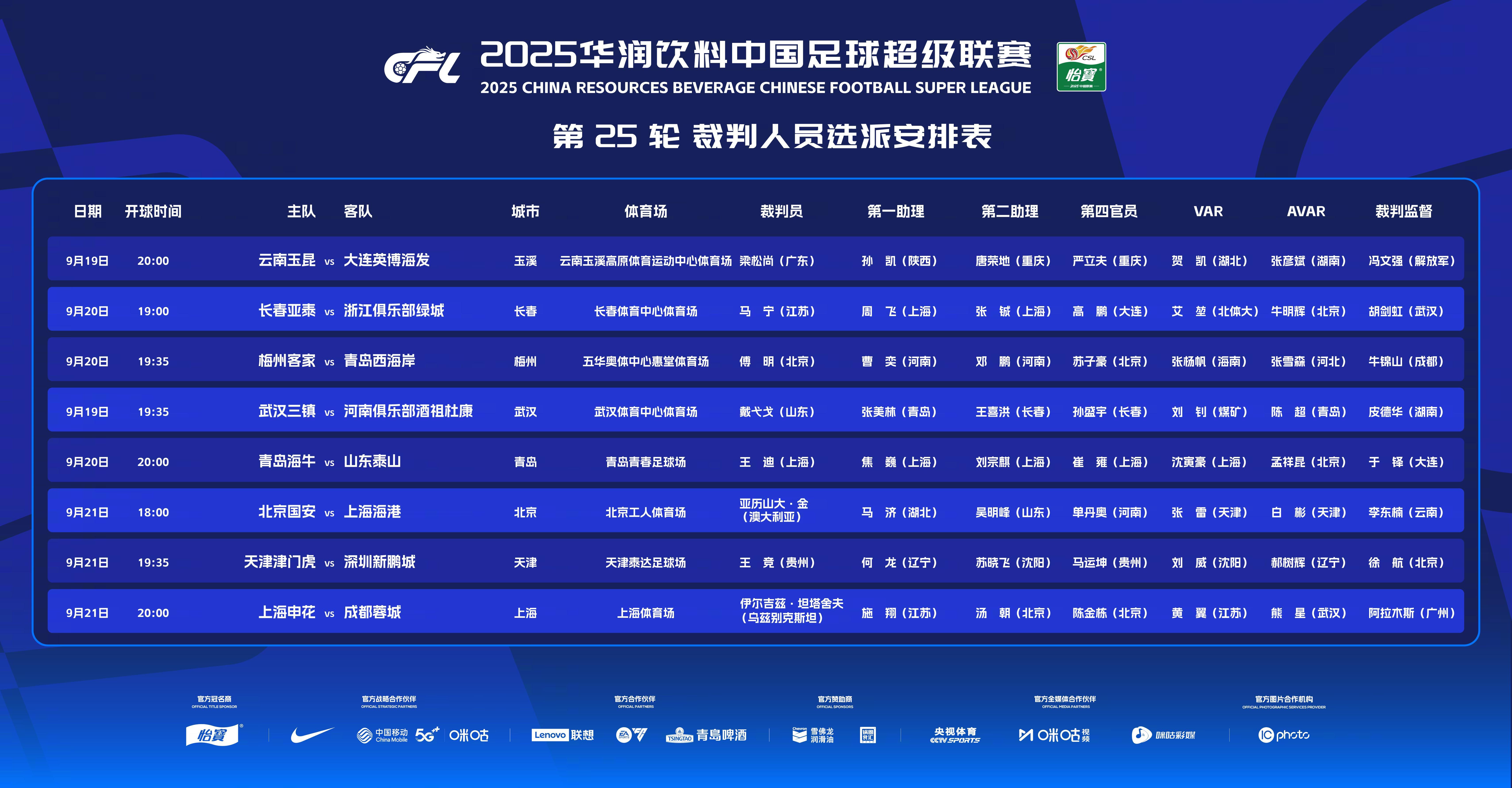 中超官方:两位外籍主裁执法国安vs海港、申花vs蓉城争冠焦点战