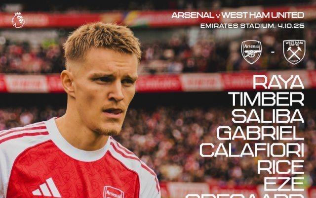 枪手战西汉姆:厄德高、埃泽齐首发