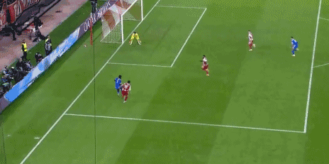 仅仅过了2分钟,阿诺德右路送球,居莱尔灵光一现转身挑传,姆巴佩力压防守球员高高跃起头槌破门,皇马2-1反超,3分钟梅开二度。