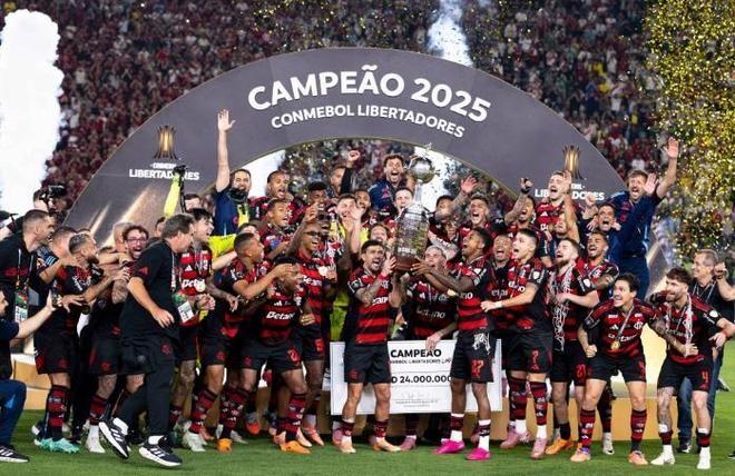 弗拉门戈解放者杯夺冠,一战创造三大足坛史诗级纪录!北京时间11月30日,南美足坛的巅峰之战在蒙得维的亚落下帷幕。在2025赛季南美解放者杯决赛中,巴甲豪门弗拉门戈凭借老将达尼洛的一剑封喉,最终以1比0力克死敌帕尔梅拉斯,历史上第四次将这座南美最高荣誉揽入怀中。