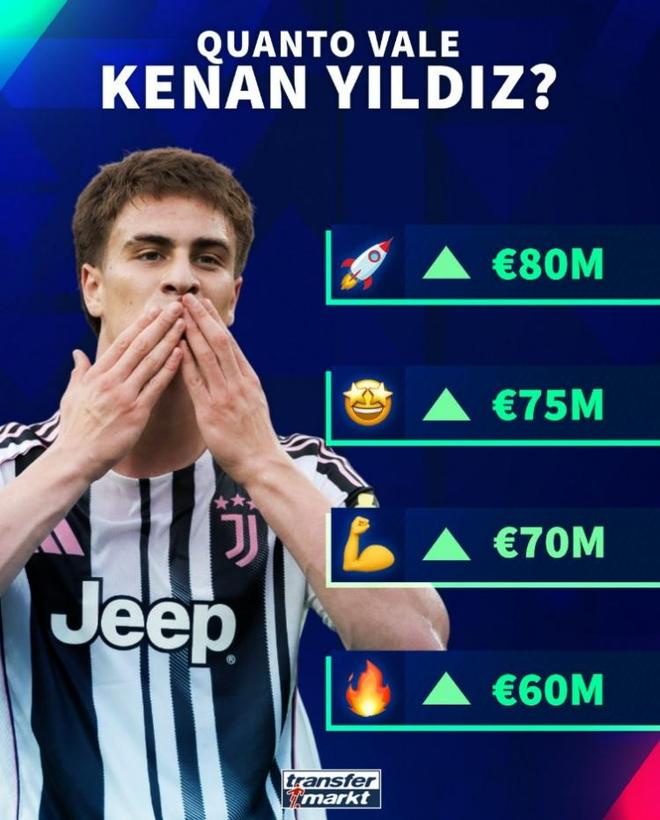 20岁的伊尔迪兹目前身价5000万欧,德转给出的下次更新身价分别有6000万欧元、7000万欧元、7500万欧元以及8000万欧元的。
