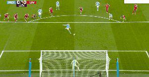 45+3’ 尼科冈萨雷斯远射,球打在范戴克身上变线入网,曼城2比0领先。